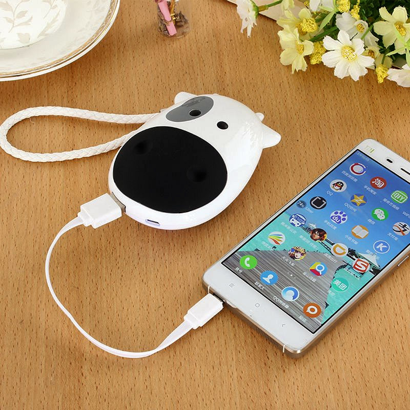 PowerBank color blanco y diseño de gato cuyo amperio disponible es de 5.000 mAh para que conecte su Samsung, iPhone, Huawei o cualquier teléfono móvil que admita USB.