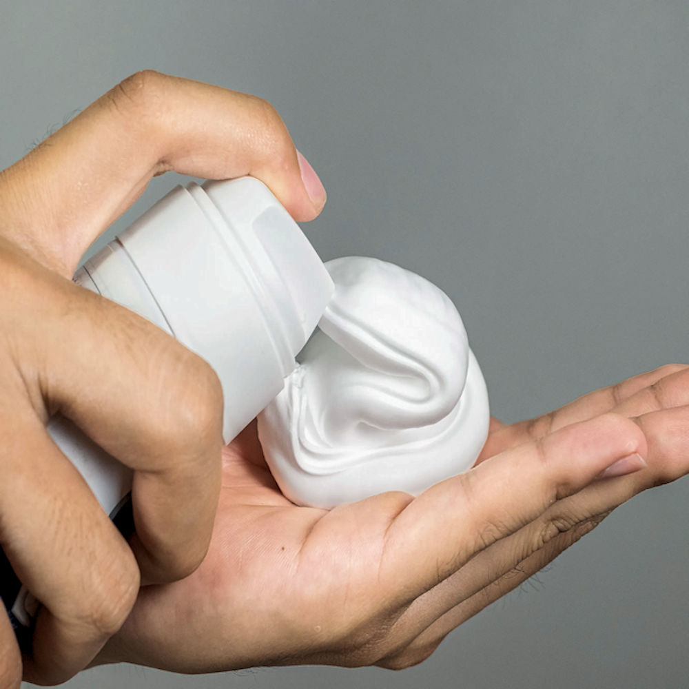 - Coloca la espuma en un recipiente: Mezcla la espuma con una brocha para levantar el producto y formar más espuma para que puedas aprovecharla al máximo.