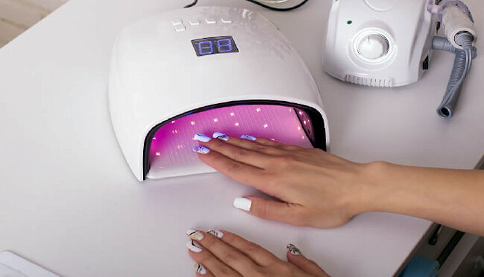 Una lampara de uñas es un pequeño aparato que ayuda al secado de las mismas después de haber sido pintadas. Por lo general, están diseñadas para ayudar a curar los esmaltes semipermanentes y las uñas de gel que de otro modo tardarían mucho tiempo en secarse por sí solos.