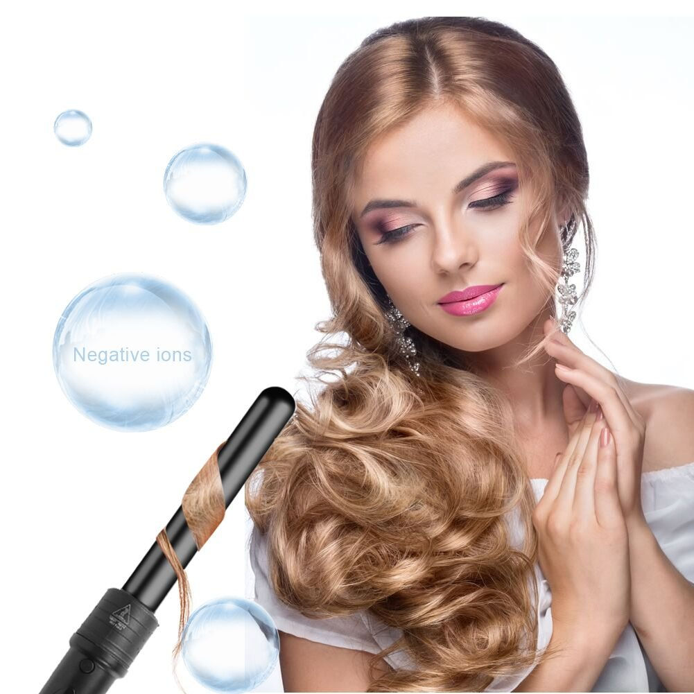 Los barriles están hechos de cerámica de turmalina de alta calidad. La turmalina emite iones negativos que contrarrestan los iones positivos en el cabello seco o dañado, realmente ayuda a no dañar tu cabello y a proteger la cutícula capilar, dando como resultado un cabello sano, sedoso y brillante, con resultados duraderos