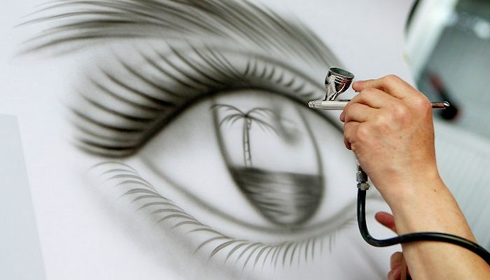 - Teniendo esto claro, se debe ensamblar el equipo: el aerógrafo en sí, la boquilla a utilizar, la manguera conectada al compresor, y el depósito con la pintura deseada. Antes de empezar a rociar se debe delimitar claramente las zonas a colorear, pudiendo apoyarte en un líquido enmascarador si lo encuentras necesario.