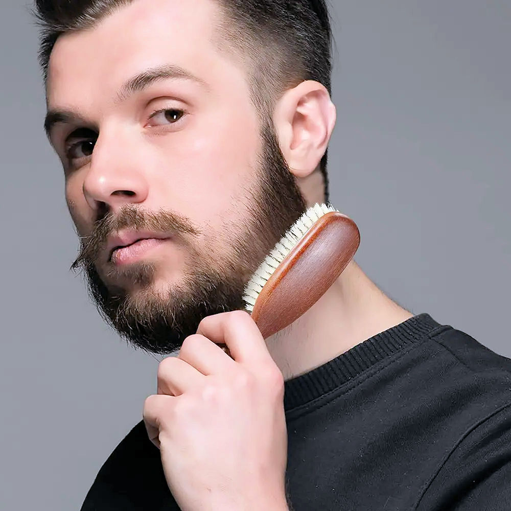 De forma ovalada que cuenta con cerdas de alta calidad,, no contiene relleno sintético para así evitar irritaciones no deseadas, este cepillo estimula la piel permitiendo el crecimiento del vello de una manera sana, puede con hasta barbas muy espesas.