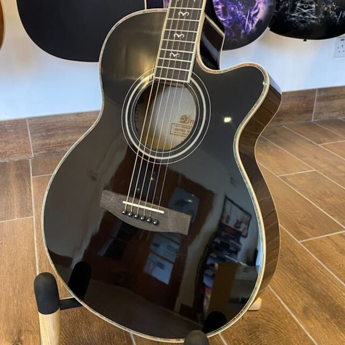 Con un espectacular diseño esta Guitarra electroacústica no tiene nada que envidiar a guitarras de alta gama. Posee un preamplificador que cumple como función principal mejorar el sonido emitido por las cuerdas ya que se ubica muy cerca de ellas proporcionando una facilidad para captar el sonido única, asimismo esta guitarra posee un clásico ecualizador de 4 bandas pero sin duda su atractivo principal es su llamativo diseño.