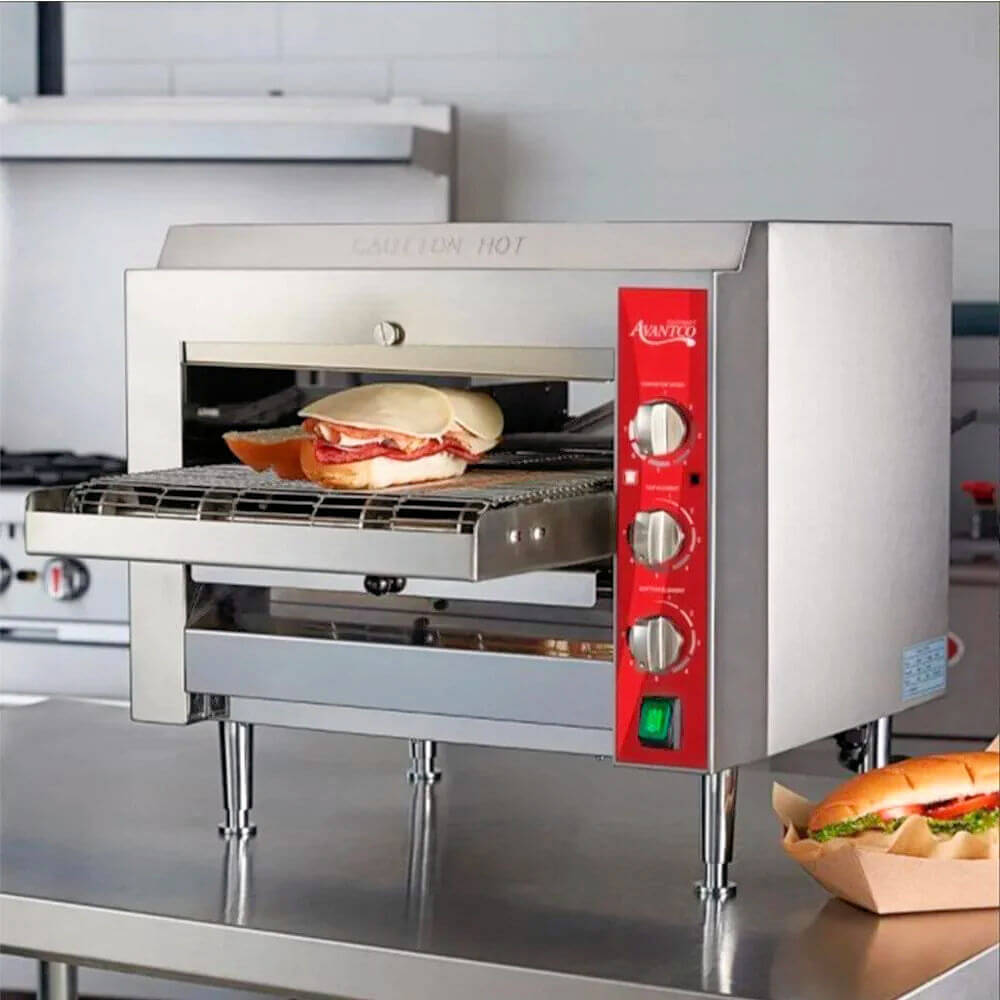 Es muy práctico de utilizar ya que cuenta con 3 configuraciones ajustables; el interruptor de funcionamiento en encendido y apagado, el regulador de potencia del horno y el regulador de velocidad de la cinta transportadora, su característica más relevante ya que le permite movilizar las pizzas de forma segura y libre de riesgos de quemaduras para el usuario.