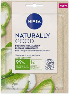 NIVEA Naturally Good es una mascarilla de tejido biodegradable con Aloe Vera lo que la convierte en el tratamiento óptimo si la piel de tu rostro posee un aspecto seco y apagado y quieres darle una recarga de energía. Con esta mascarilla podrás conseguir que la piel de tu rostro luzca fresca e hidratada.