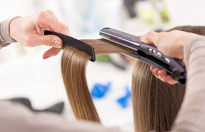 - Pasar la plancha. Deslizar lentamente y de manera suave por los mechones hasta lograr el alisado, en caso de no alisar bien se espera que el mechón se enfríe y nuevamente se vuelve a pasar la plancha.