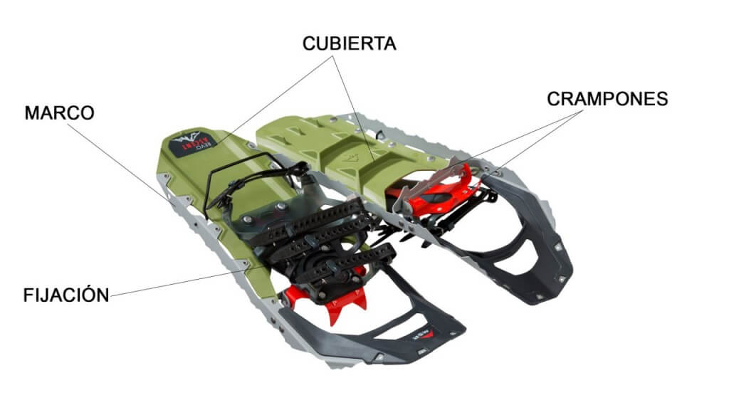 Todas deben las raquetas para la nieve deben tener un sistema de ajuste de correas para que la bota permanezca sujeta y así una mayor seguridad al andar. También la base debe aferrarse a terrenos de diferentes tipos de nieve, hielo y terrenos empinados.